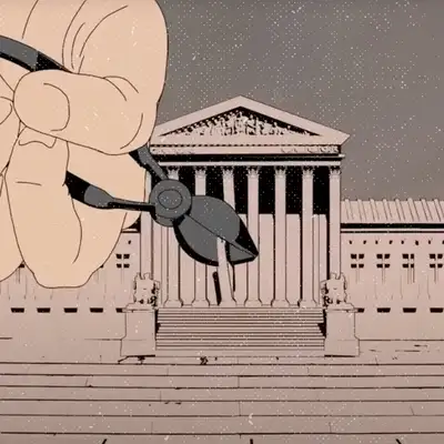 DAVID: So Bopp took the lessons he learned in the Wisconsin case, and he set about strategically assembling this new case using arguments that Roberts and Scalia and Kennedy had signaled they were sympathetic to, and just like his inspiration, Thurgood Marshall in Brown v Board of Education, James Bopp hoped this case would be the big one. Bossie's organization had run into issues with federal election regulators in the past. They tried to make some so-called documentaries before, but the dark money group was clearly a political organization and not a movie studio. So more than once, the Federal Election Commission insisted that they were subject to McCain-Feingold's restrictions. Bopp anticipated a similar pushback on Hillary: The Movie, but rather than waiting for federal election regulators to send a cease-and-desist letter to Bossie, Bopp had a genius idea. He went to a lower court demanding a declaratory judgment up front one that would officially allow Bossie to air his documentary right up until the 2008 primaries. In other words. Courts. Bopp took a play out of the Powell memo and used this case as a preemptive attack.